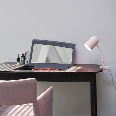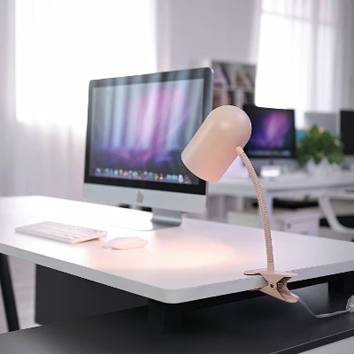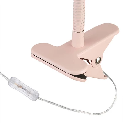 The Carter Desk Lamp by Globe Electric offers a youthful spin on a timeless industrial design. Form and function come together with a clip-arm base and sleek pivoting head white the adjustable gooseneck offers the playful feel. Perfect for a workspace, living room, bedroom, or den, the clip-arm can be placed on almost any surface to provide ideal task lighting. Further adding to the versatile design, the matte pink finish adds the perfect pop of color to all decor.