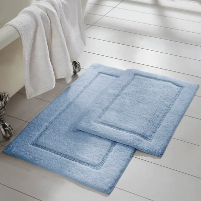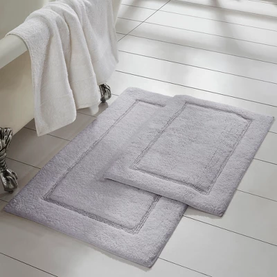 Upgrade the comfort of your bathroom by adding these two differently sized bath mats from Modern Threads. Made from 100-percent cotton for durability with daily use, the mats’ solid loop design is soft on your bare feet and highly absorbent for fast drying. A slip resistant backing keeps the bath mats safely and securely held in place. Machine washable. Please note, there might be high amount of lint on the first few washes. Set includes 2 bath mats, 17 x 24 and 21 x 34.