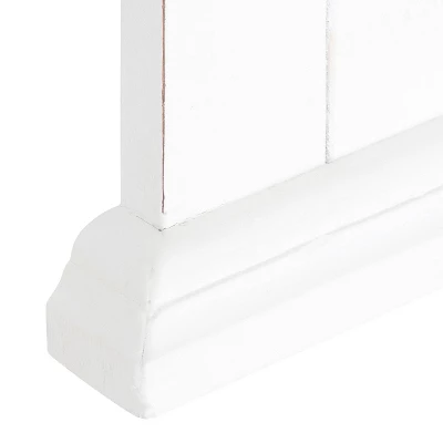 Create a home that indulges in a rustic farmhouse look with the Helcomb wall mirror by Kate and Laurel. Inspired by antique decor, this vintage mirror has a distressed white finish to bring out its weathered, resilient solid wood frame. The wooden frame has a subtle crowning both at the top and bottom, taking inspiration from decades of stylish, decadent construction. The mirror itself has a delicate arched top for a lovely, graceful look. The overall dimensions of the rustic Helcomb wall mirror are 20 inches wide by 28.75 inches tall, creating a robust statement piece for any room. Decorate any farmhouse-inspired living room, bedroom, entryway, dining room, or kitchen with this eye-catching focal point. Thanks to the large, 14.5 inches wide by 22 inches high surface area, this rustic wall mirror makes a great bathroom mirror over your powder room or master bathroom sink. Hang this sophisticated, antique-inspired wall mirror in only a matter of seconds with convenient metal D-ring hangers attached to the back of the Helcomb’s wooden frame.