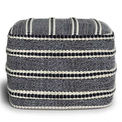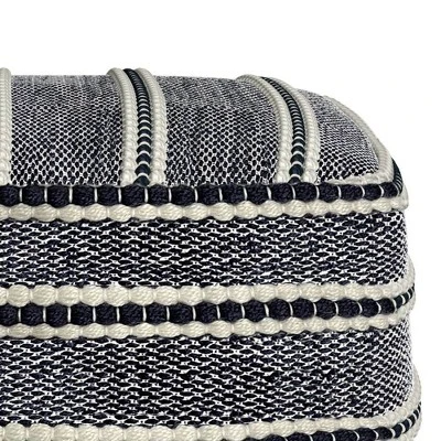 Add panache and color to your outdoor or indoor living space with Anika Square Woven Outdoor/ Indoor Pouf. This pouf is perfect for use as a footstool or as extra seating. Featuring a navy and white pattern this square-shaped pouf boasts durable, easy-care woven polyester that is water and UV resistant. This versatile pouf is sure to enhance the style of your decor.