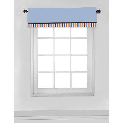 Add the finishing touches to your nursery with this Bacati Window Valance. Cotton rod pocket window valance features a signature, in house designed, signature print. The top panel of the valance has room makes for easy hanging with up to 1.75 inch opening for a curtain rod. The valance measures 54 by 15 inches and fits a standard size window. 100% cotton valance is machine washable and dried in a tumble dry. Coordinates with our Bacati Signature Collection.