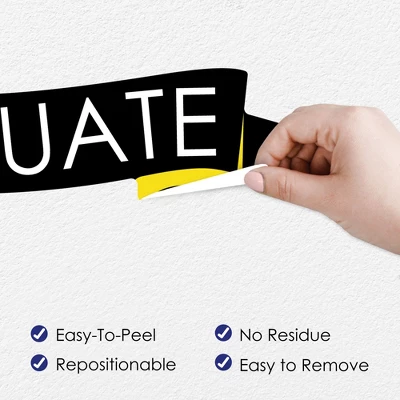 Yellow Grad – Best is Yet to Come Wall Decals Backdrop includes 1 sheet of vinyl wall stickers that include letters and shape pieces that form the perfect Yellow Congrats backdrop for your Graduation Party. Wall Decal sheet measures 50 inches wide by 16.5 inches tall. Pieces range in size from 30 x 6.5 inches to 3.25 x 3 inches. Effortless Decor: The Yellow Grad – Best is Yet to Come stickers are an easy DIY party decoration that will make a big impact at your celebration. Stick them on a flat wall surface to create that picture-perfect setting and then grab your camera to capture all the fun. Easy to Use: Yellow Grad – Best is Yet to Come vinyl decals are easy-to-peel and repositionable. Wall art stickers will adhere to various surfaces including painted walls, plastic, wood, glass, and metal. To use, make sure your surface is clean and dry. Slowly peel the sticker from the paper to avoid tearing and smooth over with your hand. They are also easy to remove, leaving no residue. High-Quality Supply: Yellow Grad – Best is Yet to Come wall stickers come with a quality matte finish and vibrant colors. They are printed on water-resistant professional quality material and will arrive on one full sheet rolled. Made In The USA: Yellow Grad – Best is Yet to Come Wall Decals are designed and manufactured at our Wisconsin facility using materials that are Made in the USA.