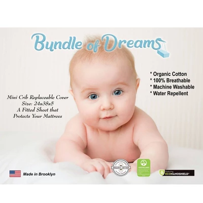 The Bundle of Dreams Zipper Mattress cover is made of Organic Cotton and is water repellent up to 12 hours. Unlike waterproof mattress covers, Bundle Of Dreams is 100% breathable. It will fully encase a crib mattress and can be machine washed and dried.