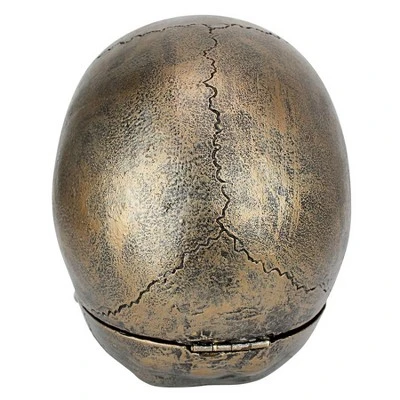 The reality of death stares back at us from this artfully crafted skull that hinges open to reveal the very seconds of our lives ticking away! A classic memento mori, an artwork designed to remind us of the shortness and fragility of life, mimics a tradition that dates to at least the 17th century. Cast in quality designer resin to capture details such as a lifelessly toothy smile and dark, sunken eyes, this faux bronze-finished piece houses a quartz movement clock with Roman numerals and sweep second hand. Exclusive to Toscano, this macabre collectible just might shock us from thoughts of death to appreciating life! Accepts your single AA battery, not included. 5″Wx8″Dx6½”H. 2 lbs.