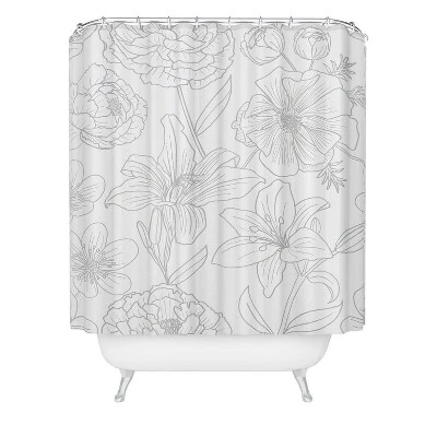 Emanuela Carratoni Line Art Floral Theme Shower Curtain Green – Deny Designs