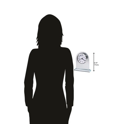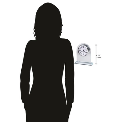 - Crystalline Bliss: Few materials capture such enduring beauty as Starphire crystal glass. It’s bright, flawless, and meticulously cut. On this clock, the topmost curve adds warmth and character to the piece. It’s that rounded silhouette that graces the center dial, awash in white and finished with black Roman numerals, black hands, a silver alarm hand, and polished silver-tone bezel. A flat glass crystal completes the design.