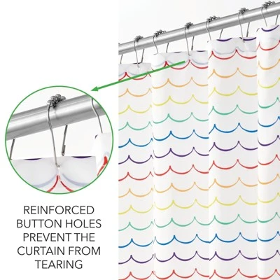 - SIMPLE INSTALLATION: Perfect for any bath or shower space, each curtain contains 12 reinforced buttonholes that fit most standard shower hooks and rings; Top hem is reinforced for long term use