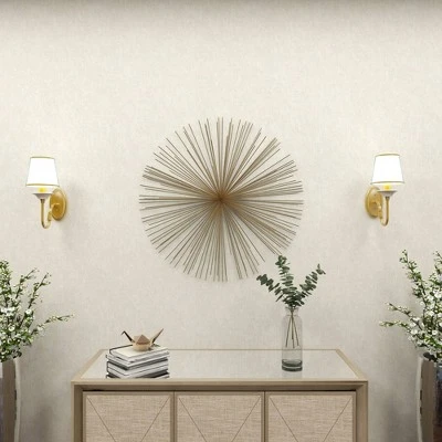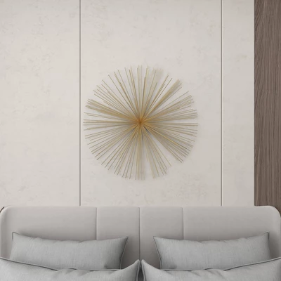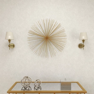 - •Sunburst wall décor piece feature a solid tin wire construction