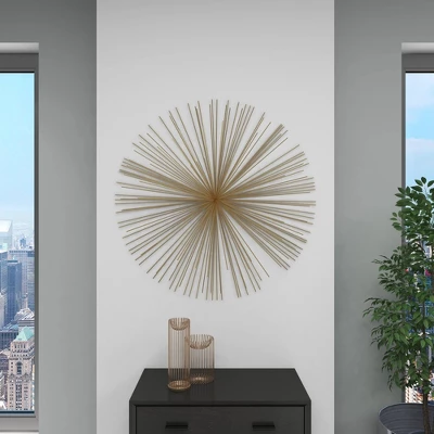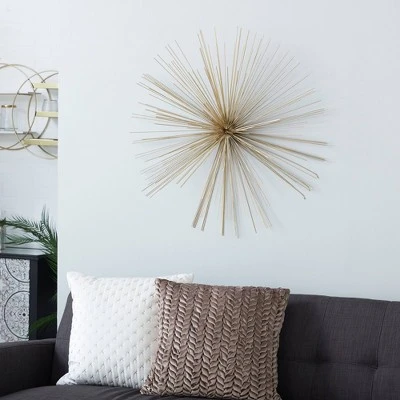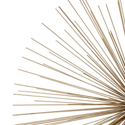 Create an excellent focal point on your walls paired with some cute accent tables, and level up your home with this amazing wall Decor. A 3D wall art home decor set highlighting metal tubes that will make a statement in any entryway, living room, bedroom, or dining area. This item ships in 1 carton. Can be hung vertically using the keyholes on the back; nails and screws not included. Suitable for indoor use only. This item ships fully assembled in one piece. This is a single gold colored wall sculptures. Contemporary style.