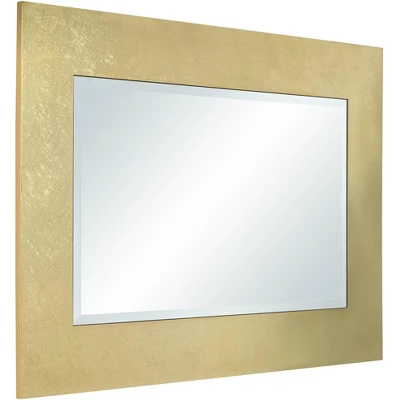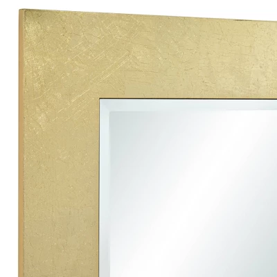 Add a little dose of drama and sophistication to any room with a contemporary wall mirror. From Noble Park, its hand-made and boasts a center of beveled glass that brighten your living space or bedroom. Its thick frame receives a shiny gold leaf finish that’s rich in dimensionality while maintaining a sense of restrained simplicity.