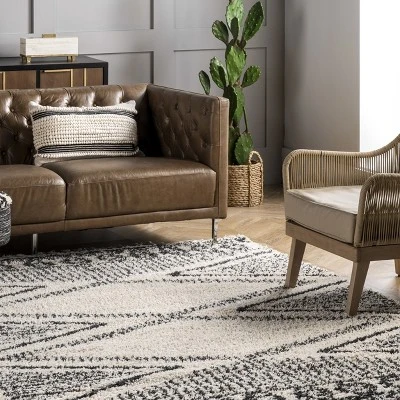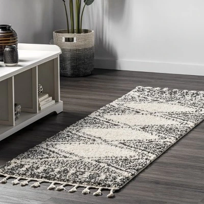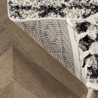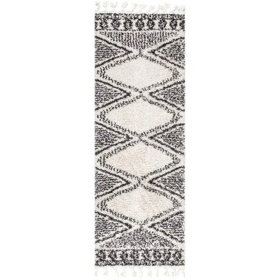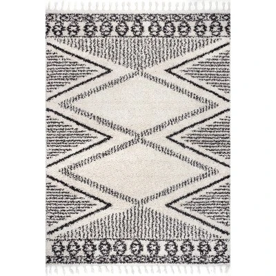 Modern, edgy style combined with traditional Moroccan accents make this rug shine. This rug boasts a cozy shag pile perfect for your bedroom or low traffic living room.
