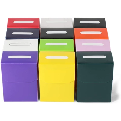 Designed to fit a variety of cards, this trading card game storage box pack allows you to conveniently transport your valuable collections, while also keeping them safe in storage. Crafted with high-quality polypropylene (PP), each trading card case is durable and sturdy for long-term use. This pack comes with 12 cases in assorted colors, including matching dividers.