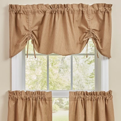 Complete the look of any room with our rustically charming Sturbridge valance. The beautiful, striped print and charming hues will add the perfect pop of color to your existing decor, making it a great addition to your space. Whether you hang it in the kitchen, bathroom or use it to dress up the curtain panels in your living room, you’ll love the transitional style it adds to your home. It can be used as a standalone accent or paired with the coordinating tier pairs for a timeless farmhouse look!