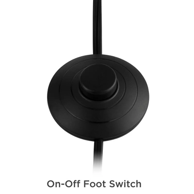 - Standard medium base sockets rated up to 60 watts each (bulbs not included). On/off foot switch in cord located 35″ from base of lamp. 8′ black cord.