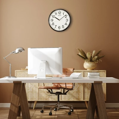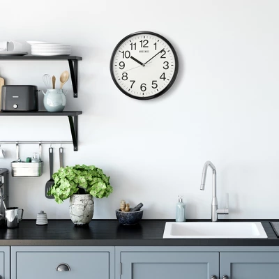 This black Seiko 12″ Classic Office Clock is the perfect complement to any home or office. The slender profile and easy to read Arabic numbers will compliment any space. Powered by 1 AA battery (included). Overall dimensions: 12 X 12 X 1.8 inches. All Seiko clocks are equipped with quartz movement making it the most accurate at time keeping.