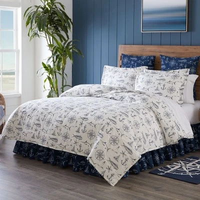 The Captain Quarters euro sham provides a modern seaworthy look to your home. The navy blue and white print pillow cover with nautical icon pattern will provide your bedroom with a sophisticated maritime feeling. Made from 100% high quality cotton, this euro sham provides an easy way to add color and style to any room of your home.