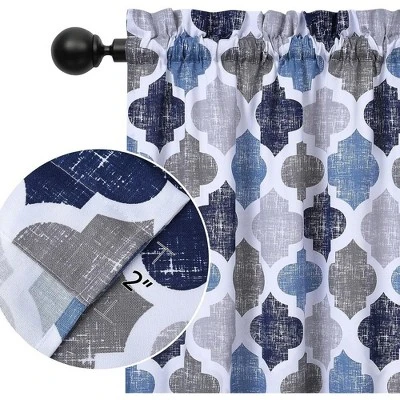 1. QUALITY MATERIAL: Our window tier curtains are made of premium cotton polyester blend fabric which feels skin-friendly, offering you a comfortable and healthy environment. 2. MULTIPLE FUNCTIONS: Use the tailored tier curtains to cover the lower portion of windows or used alone on shorter length windows, it will coordinate and enhance the appearance of your kitchen, bathroom, laundry room, studio or whatever you used them. 3. SERVE WELL: Not only do these curtains provide privacy, they also allow the sun’s soft light to gently stream into a room. 2 inch rod pocket works well with tension rods or normal rods. It fits a curtain rod up to 1.5″ in diameter. Simple pleats on the rod pocket add elegant look. 4. UNIQUE HOME DECOR: Quatrefoil tile print design reveals the fashionable elements and makes for an ideal window treatment. The color and pattern goes well with many decorating styles.