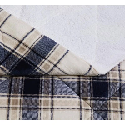 Printed plaid patterns on a velvet face cloth reverses to a luxurious sherpa plush fabric in designer soldi colors. The fabric provides the ultimae in softness and is great for cold nights. The polyester velvet face cloth is durabel and able to handle high traffic areas. Face is 100% polyester mink reverse to sherpa with 100% polyester fill. This item is machine washable, but please be sure to use appropriate sized machinery to avoid any excess wear on the items.