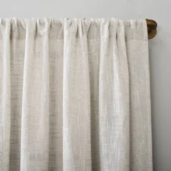 A beautiful addition to your home décor, this Scott Living Wallis Crosshatch Slub Textured Linen Blend Sheer Curtain Panel adds refined sophistication to your space with a sophisticated textured design.