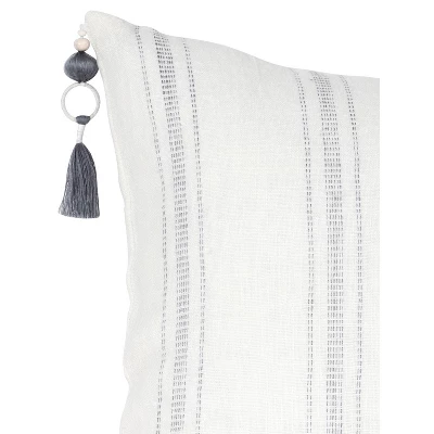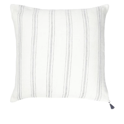 The White with Grey Stripes So Soft Linen Pillow is Soo soft- you won’t believe it’s linen! 100% Linen featuring a grey embroidery pattern and trim detail. Pillow Cover Only.