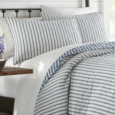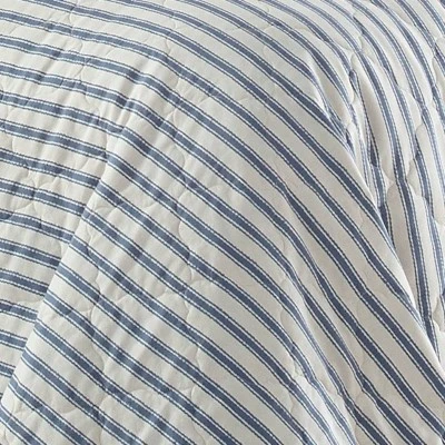 Add the perfect dose of maturity to your bedroom with the Willow way quilt set from Stone Cottage. With its banded navy and ivory striped design and elegant diamond quilting, this set is subtly eye catching and will match a wide array of decor styles. Constructed with pre-washed 100% cotton material, the quilt and coordinating shams are ultra soft and cozy, and conveniently machine washable. Set is available in Full/Queen: 90″L x 90″W quilt, Two 21″L X 27″W standard shams and King 96″ L X 104″W, Two 37″W x 21″L King shams.