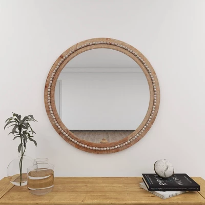 • •This decorative round mirror feature an extra large natural mirror design with a traditional wooden bead pattern